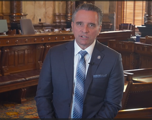 Senate President Ty Masterson offered up the Republican response to Gov. Laura Kelly's State of the State address, although it was prerecorded before Wednesday night.